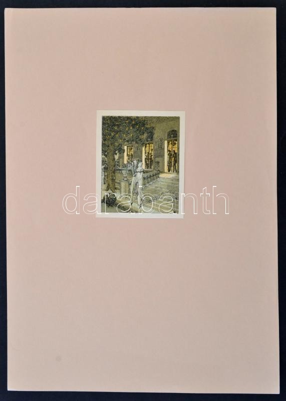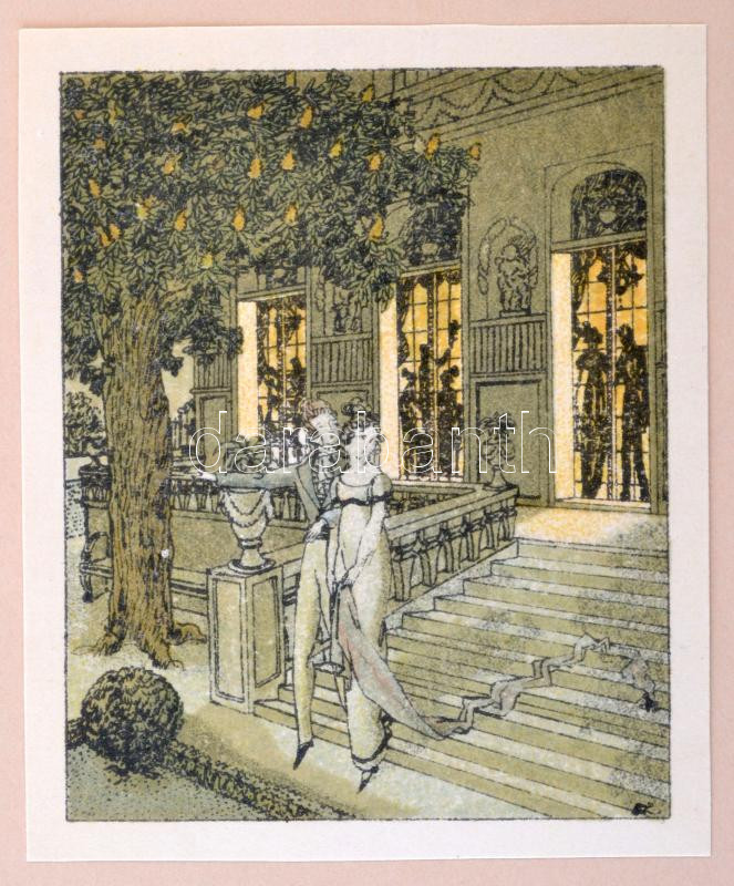 Fritzi Löw (1892-1975): Bál után, színes litográfia, papír, jelzett a litográfián, 7,5×6 cm