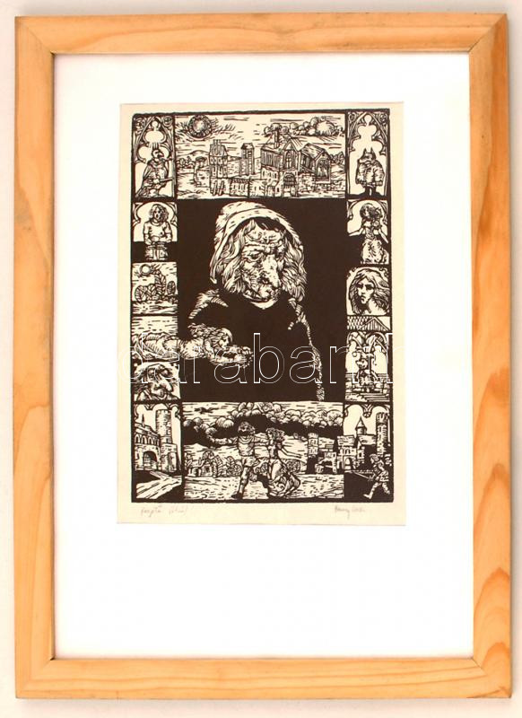 Herczeg István (?- ): Regélő, linómetszet, papír, jelzett, paszpartuba...