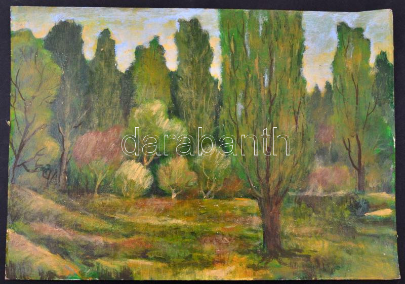 Jelzés nélkül: Erdőszél. Olaj, karton, sérült, keretben, 35×49 cm