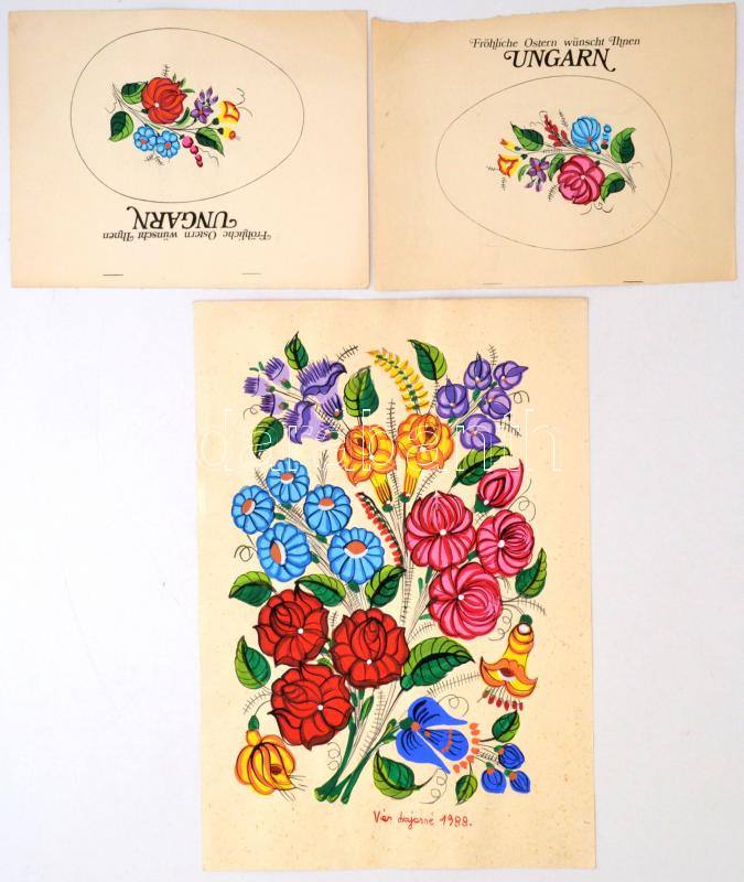 Jelzés nélkül: Kellemes húsvét magyar motívumokkal, 3 db. Vegyes techn...