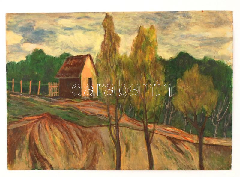Jelzés nélkül: Viskó. Olaj, karton, 35×50 cm
