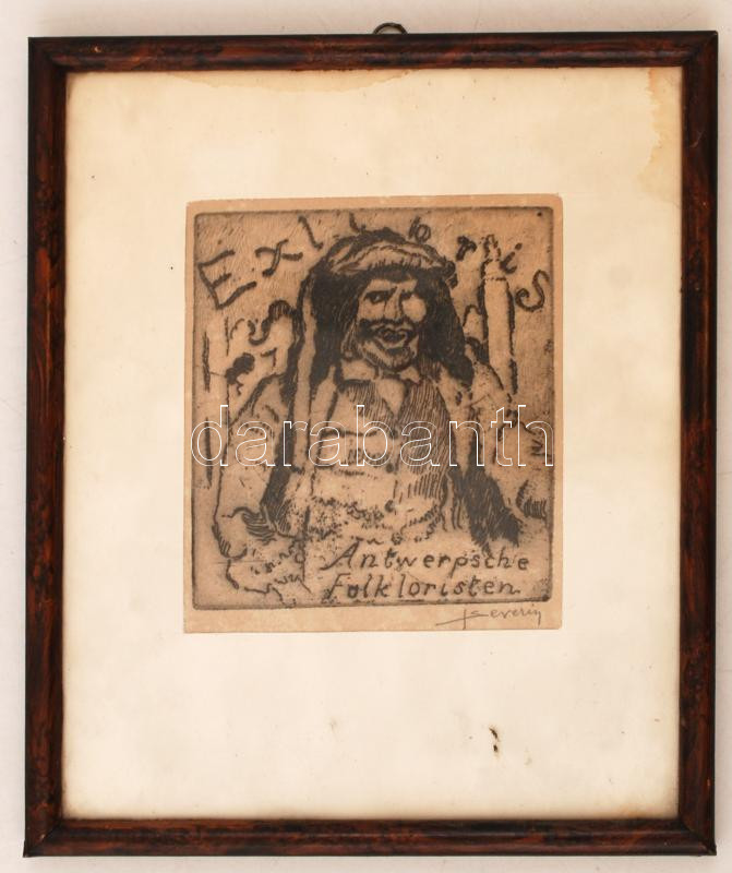 Juliaan Severin (1888-1975): Antwerpsche Folkloristen. Ex libris, papír, jelzett, 11×10 cm