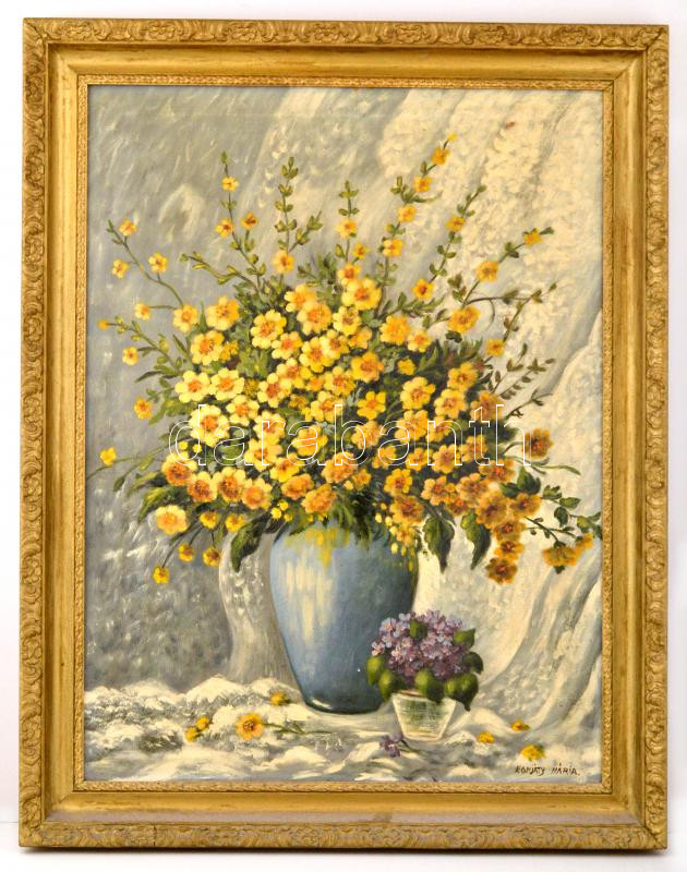 Komjáty Mária (?-?): Virágcsendélet. Olaj, vászon, jelzett, keretben, 80×60 cm