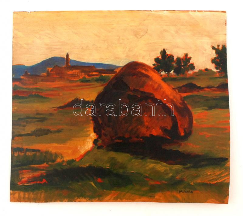 Mikola jelzéssel: Szénaboglya. Olaj, falemez, 38×43 cm
