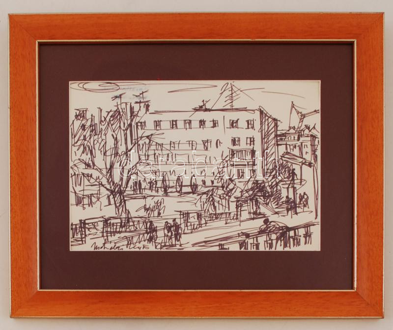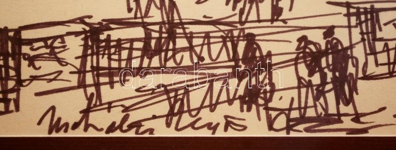Mohácsi Regős Ferenc (1917-2003): Utca részlet. Filc, papír, jelzett, üvegezett keretben, 16×24 cm