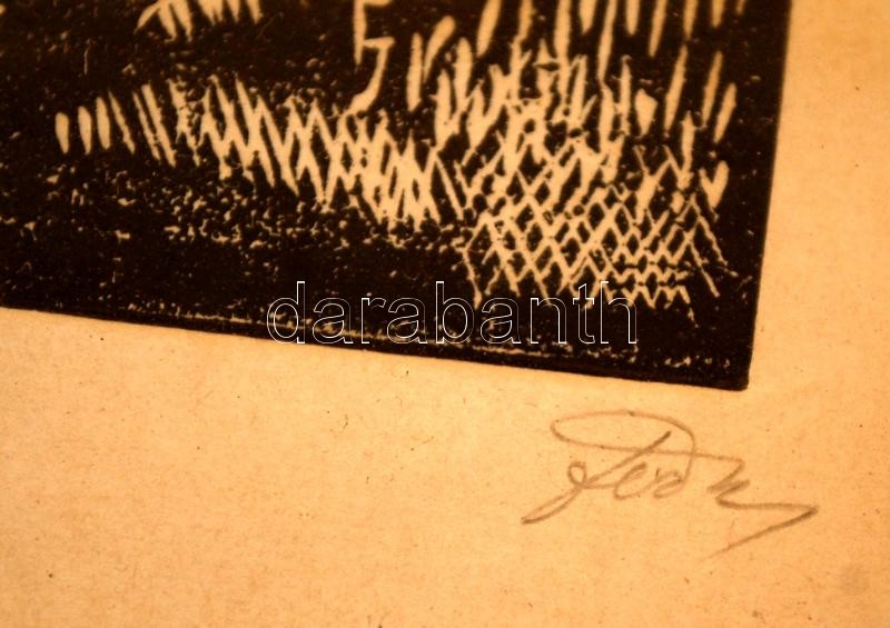 Olvashatatlan jelzéssel: Anya a gyermekével. Linó, papír, üvegezett keretben, 19×15 cm