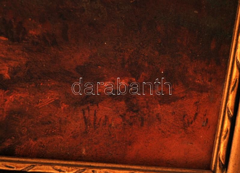 Olvashatatlan jelzéssel: Erdőszéli tábortűz, olaj, vászon, fa keretben...