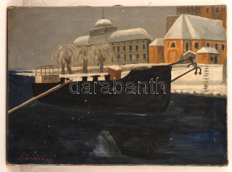 Olvashatatlan jelzéssel: Kikötés. Olaj, vászon, 40×55 cm