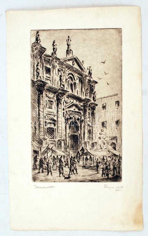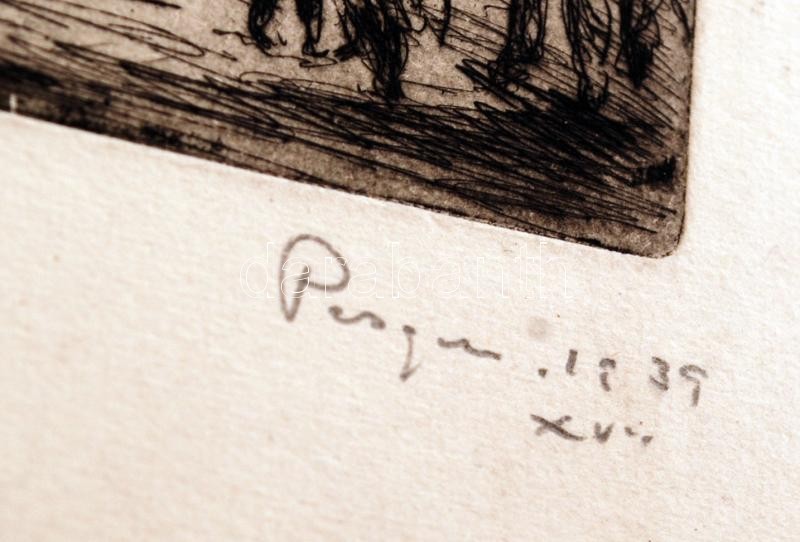 Olvashatatlan jelzéssel: Piac. Rézkarc, papír, 22×13 cm