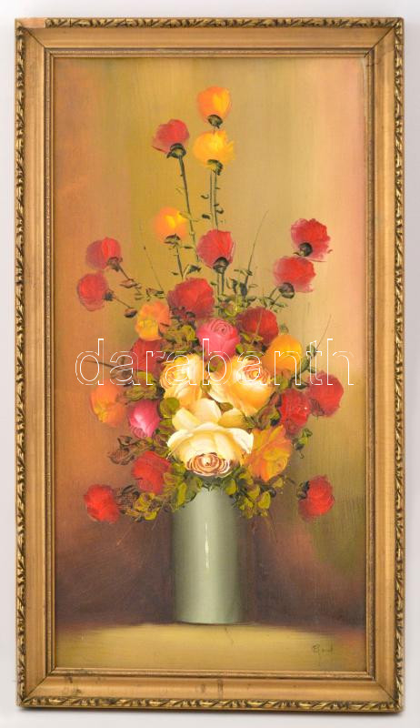 Olvashatatlan jelzéssel: Virágcsendélet. Olaj, vászon, foltos, keretben, 63×32 cm