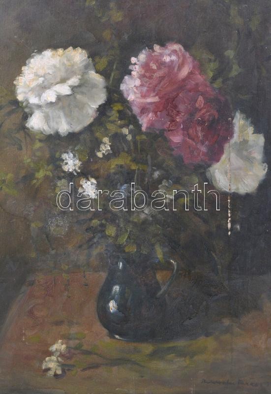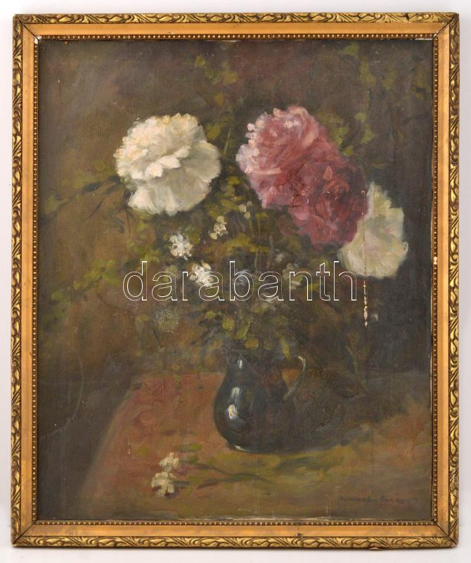 Olvashatatlan jelzéssel: Virágcsendélet. Olaj, vászon, keretben, sérül...