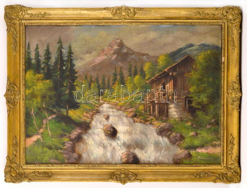 Reinprecht jelzéssel: Zúgó patak, olaj, vászon, antik fakeretben, 50x6...