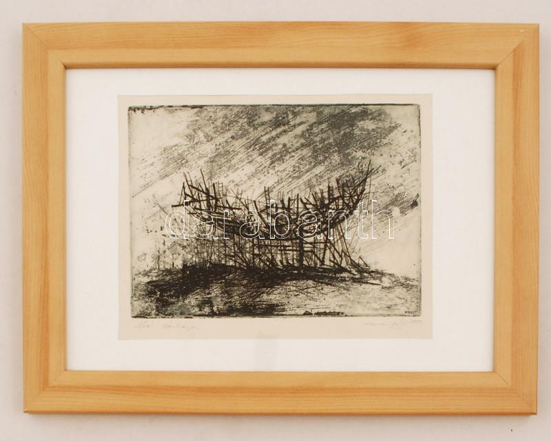 Wieszt József (1951-2007): Nóé bárkája. Rézakrc, papír, jelzett, üvege...