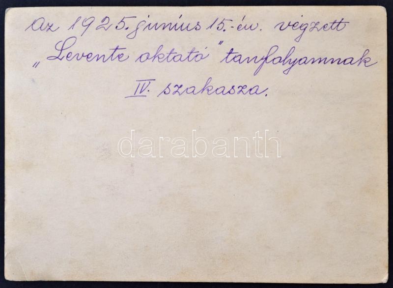 1925 a folyó évben végzett leventeoktató tanfolyam IV. szakasza, csoportkép, hátulján feliratozva, 12,5×17,5 cm