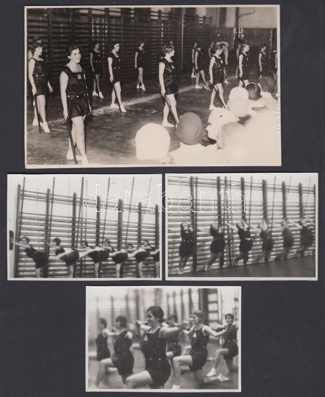 1930 BSE Tornacsarnok ünnepi bemutató, sajtófotó Schaffer Gy. jelzett fotó, 17x23cm+ 4db fotó, különböző méretben, cca 6x8cm