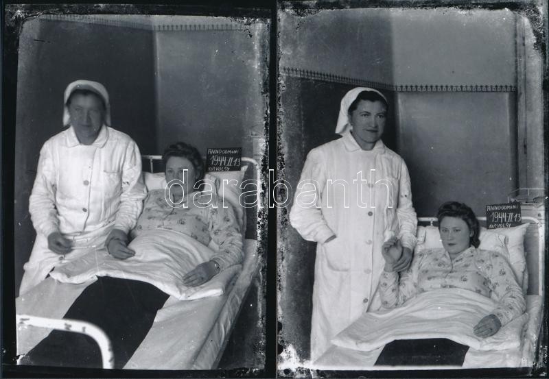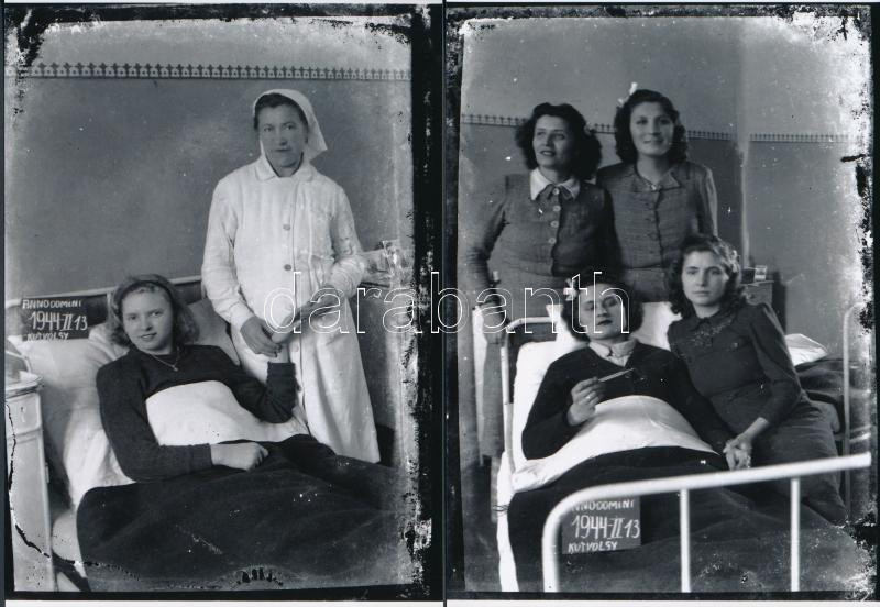 1944 Kútvölgy, Betegek és betegápolók, 4 db feliratozott korabeli nega...