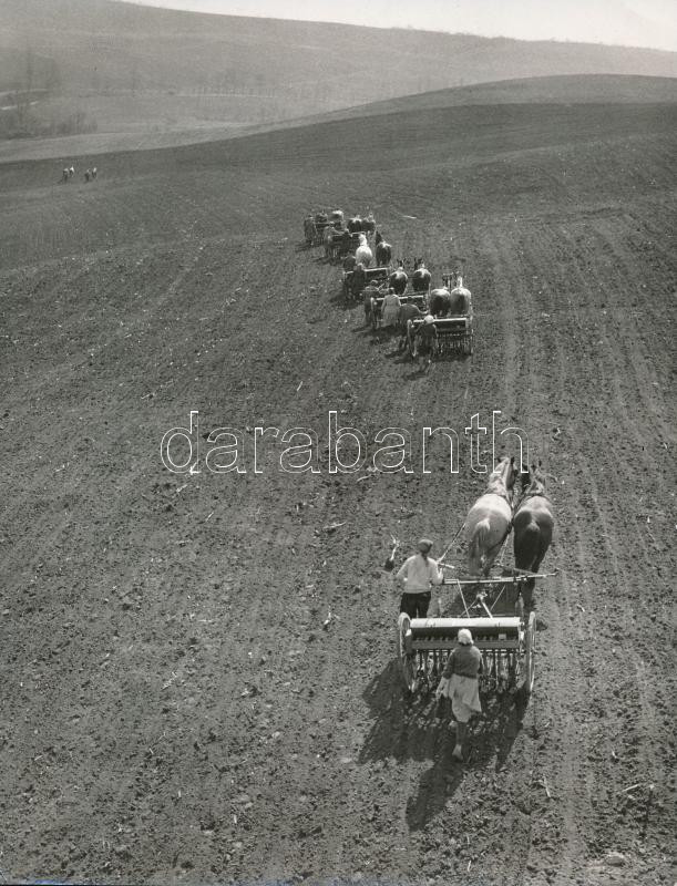 1962 Bajkor József: Tavaszi vetés, feliratozott vintage fotóművészeti ...