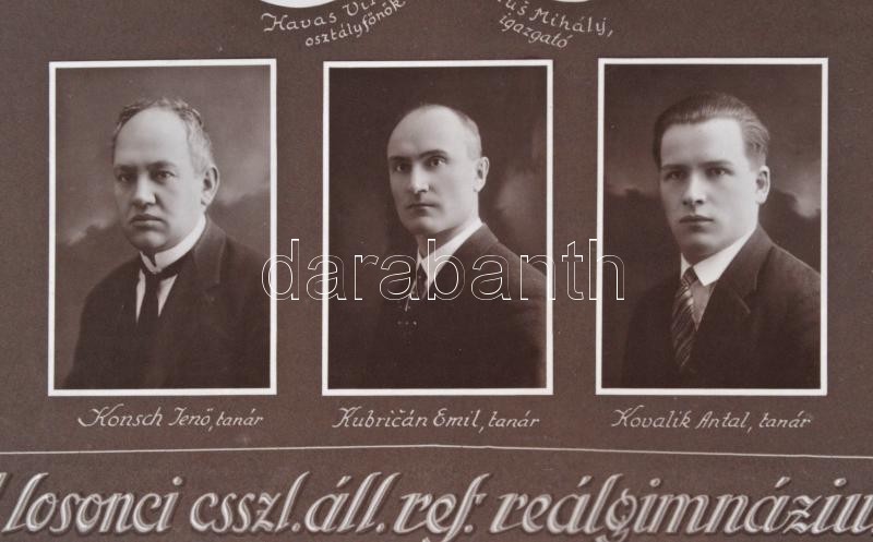 A Losonci református gimnázium magyar osztályának 1930-31-ben végzett növendékeinek tablóképe az iskolafényképével, Bergtraun felvétele, 28x39cm