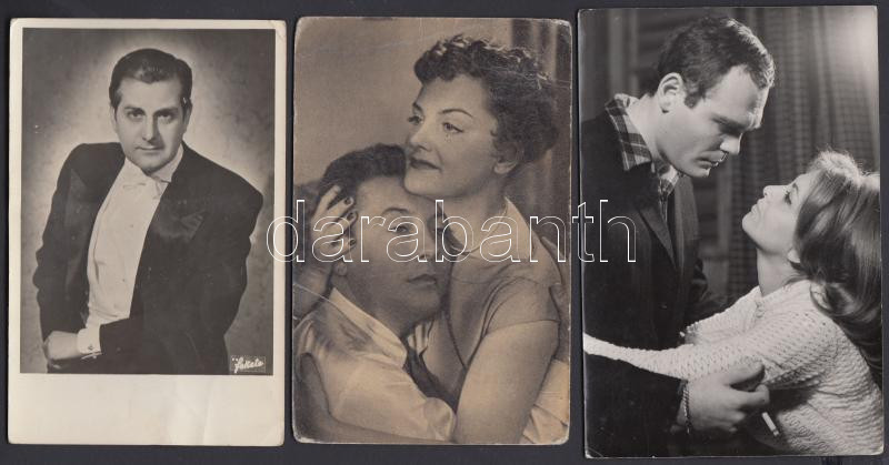 Description: Fotók és nyomtatványok különböző magyar és külföldi színészekről, köztük Berczy Géza, Domján Edit, Tolnay Kláris stb. Különböző méretben és minőségben, 9db, cca 9x13cm