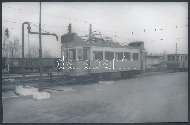 Linzbauer Tamás: Budapest, villamos a kocsiszínben, pecséttel jelzett fotó, 9x14 cm
