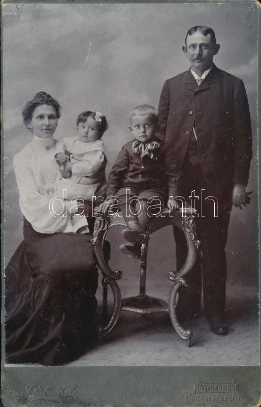 cca 1900 Családi fotó, keményhátú kabinetfotó Schiebert H. nagyszombat...