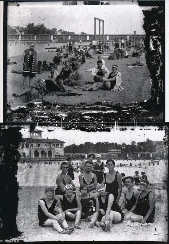 Description: cca 1920-1930 Strandfürdő valahol Bács-Kiskun megyében, Lőcsey Árpád kecskeméti vándorfényképész hagyatékában őrzött 2 db üveglemez negatív modern nagyítása, 13x18 cm