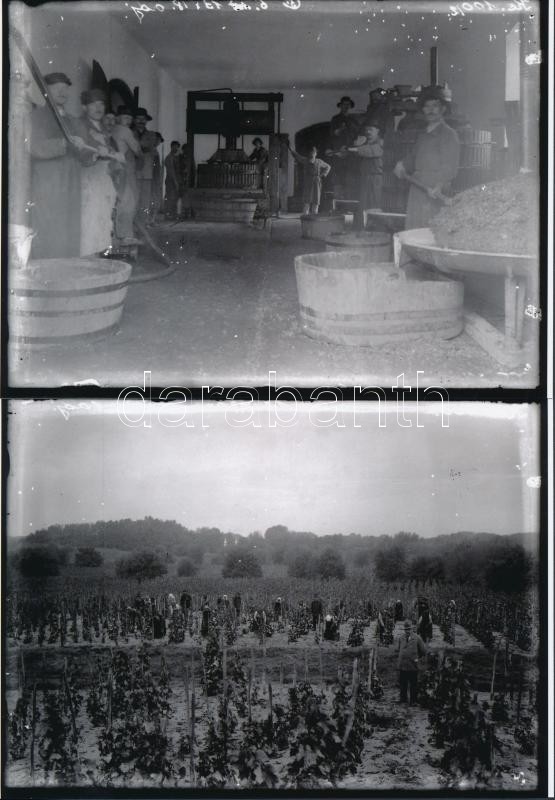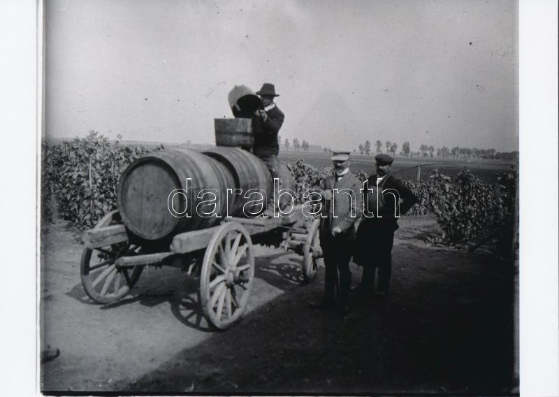 Description: cca 1937 Szüret és pincészet Bács-Kiskun megyében, Lőcsei Árpád kecskeméti vándorfényképész hagyatékában őrzött 5 db üveglemez negatívról készült modern nagyítások, 13x18 cm