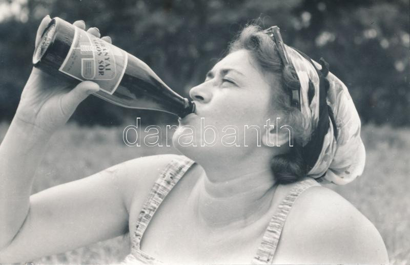 cca 1960 Sörrel jobban megy a munka, fotó, 9x14cm