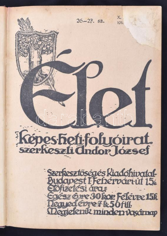 1918 Élet. Képes heti folyóirat. Szerk.: Andor József. Sok érdekes cik... https://www.darabanth.com/en/271-Online-auction/271.0/Other-collectibles/Printed-Materials~32/1918-Elet-Kepes-heti-folyoirat-Szerk-Andor-Jozsef-Sok-erdekes-cikkel-es-kepanyaggal-Fe~II1251717