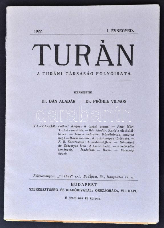 https://www.darabanth.com/en/271-Online-auction/271.0/Other-collectibles/Printed-Materials~32/1922-A-Turan-c-folyoirat-I-evnegyedi-szama-68p-felvagatlan-szep-allapotban~II1370020