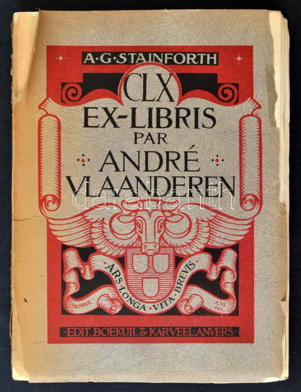 1946 A.G.Stainforth: CLX Ex-libris D'André Vlanderen. Boekuil en Karveel. Sorszámozott:198/350. Elvált papír borítóval. / 1946 A.G.Stainforth: CLX Ex-libris D'André Vlanderen. Boekuil en Karveel, catalogues, on the topic of bookplates