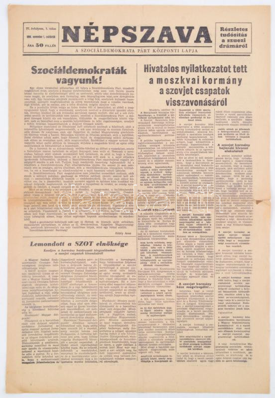 https://www.darabanth.com/en/271-Online-auction/271.0/Other-collectibles/Printed-Materials~32/1956-november-1-Nepszava-A-Szocialdemokrata-Part-kozponti-lapja-pp4-46x31cm~II1377798