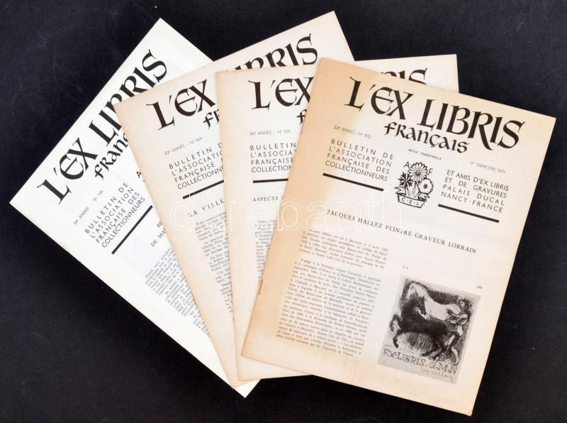 1971-72 L'Ex libris francais, 4 száma, 27x21cm /1971-72 L'Ex... https://www.darabanth.com/en/271-Online-auction/271.0/Other-collectibles/Printed-Materials~32/1971-72-LEx-libris-francais-4-szama-27x21cm-1971-72-LEx-libris-francais--4-volumes-of-various~II1346064