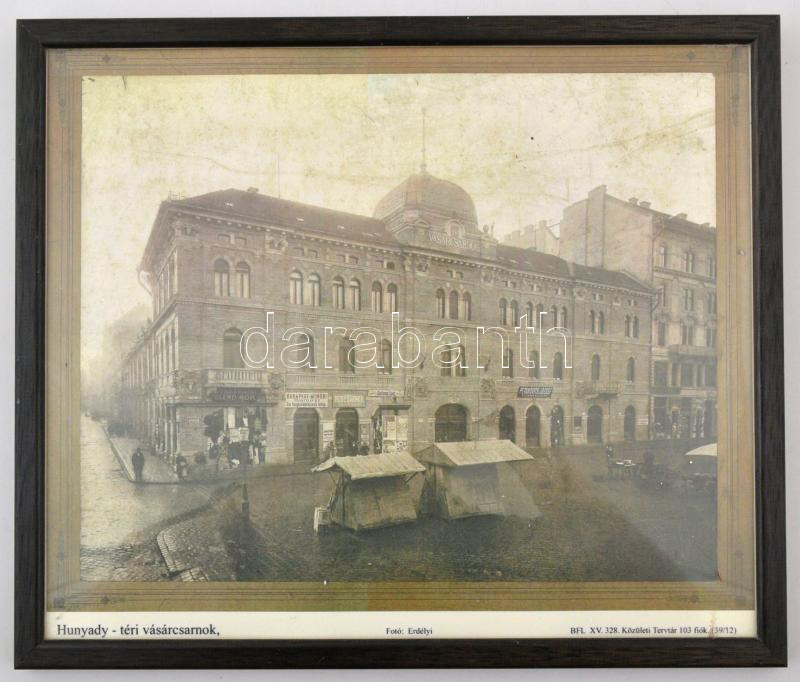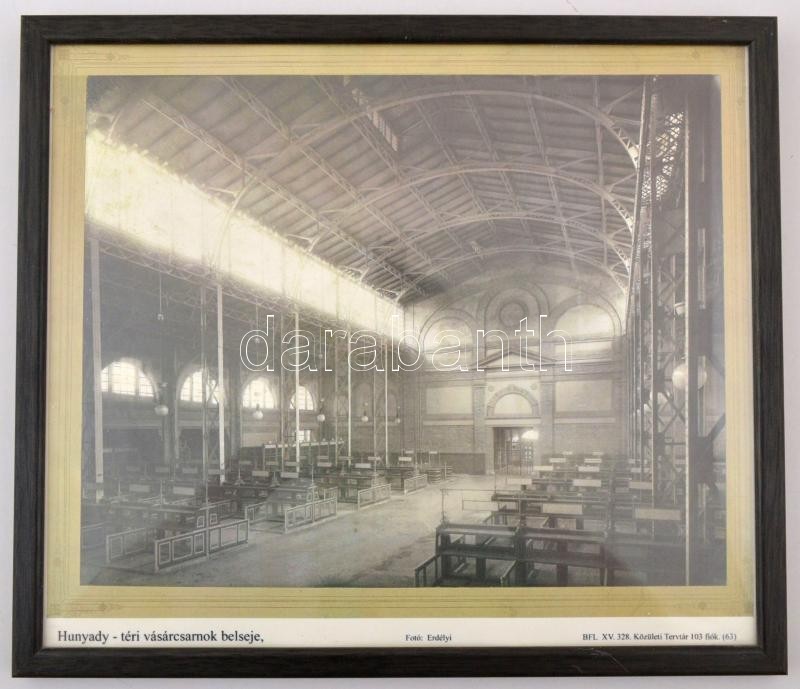 2 db. Hunyadi téri vásárcsarnok nyomat, modern másolat, képkeretben, 2...