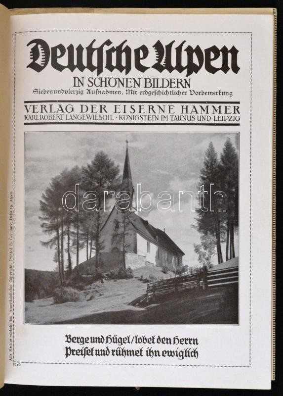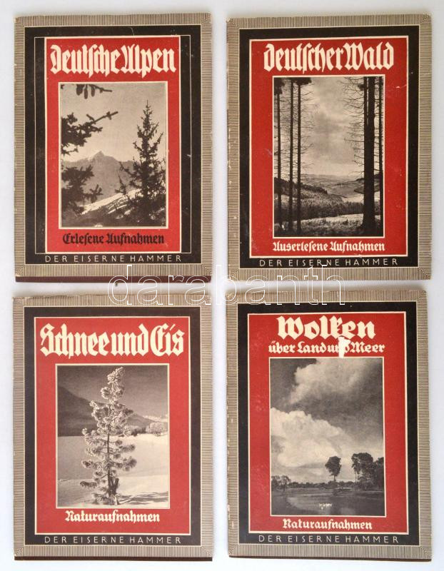 4 db. Der Eiserne Hammer kiadvány, (Wolken über land und meer, Deutscherwald in schönen Bildern, Schnee und Eis, Deutsche Alpen in schönen Bildern), Szerk.: Karl Robert Langewiesche, Königstein im Taunus und Leipzig, é.n. (cca 1930), Der Eiserne Hammer, német nyelven, 48+47+32+48 p. A hátsó szennylapon ceruzás jegyzettel, és néhol kisebb szakadással.