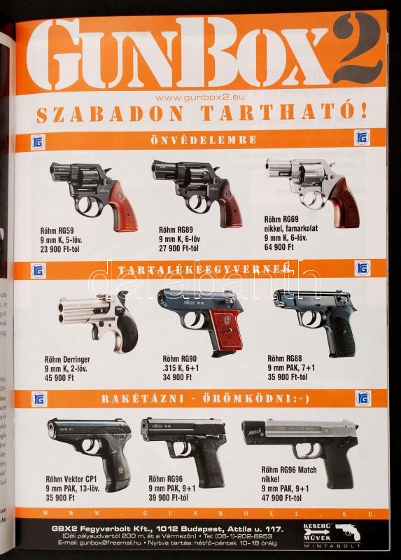 https://www.darabanth.com/en/271-Online-auction/271.0/Other-collectibles/Printed-Materials~32/5-db-Kaliber-magazin-Budapest-2009-2010-Direx-Media-Kft-Nem-teljes-evfolyam-Kiadoi-tuzot~II1372863