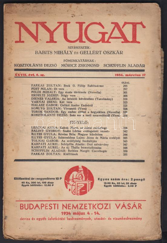 https://www.darabanth.com/en/271-Online-auction/271.0/Other-collectibles/Printed-Materials~32/Babits-Mihaly-Gellert-Oszkar-szerk-Nyugat-1934-XXVII-evf-6-sz-Kiadoi-papirkotes-A~II1375961