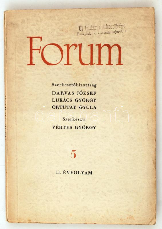 Forum folyóirat II. évfolyam 5. szám. 1947 május Budapest, 1947, Hungá... https://www.darabanth.com/en/271-Online-auction/271.0/Other-collectibles/Printed-Materials~32/Forum-folyoirat-II-evfolyam-5-szam-1947-majus-Budapest-1947-Hungaria-Hirlapnyomda-Rt-Rag~II1353458