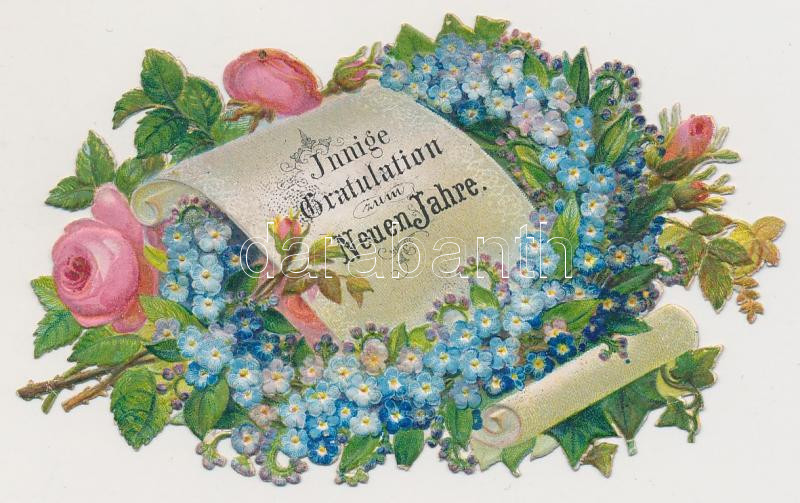 cca 1900 "Innige Gratulation zum Neuen Jahre" - Újévi dombornyomott litho üdvözlőkártya