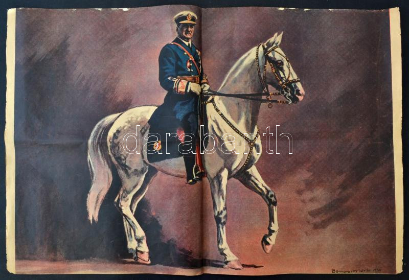 cca 1920 Horthy Miklós hőstetteit megörökítő képek és nagyméretű posztere újság belívén 60x40 cm