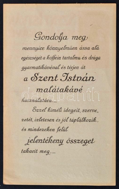 cca 1930-40 Szent István Malátakávé számolócédula, 16x10cm