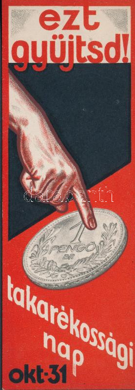 cca 1935 Pengős takarékossági nap, Klössz nyomtatvány, 16x5cm