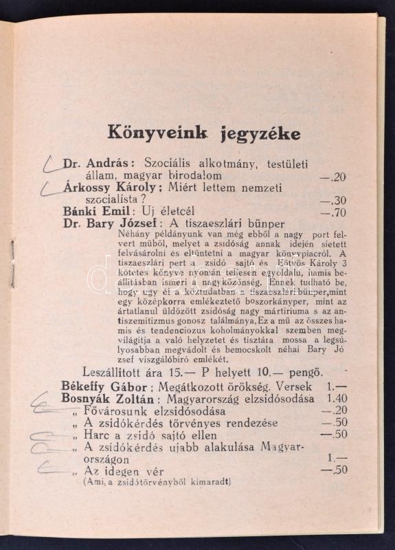 cca 1940 Lőcsey magyar könyvszolgálat ismertetője. Benne a hungarista ...