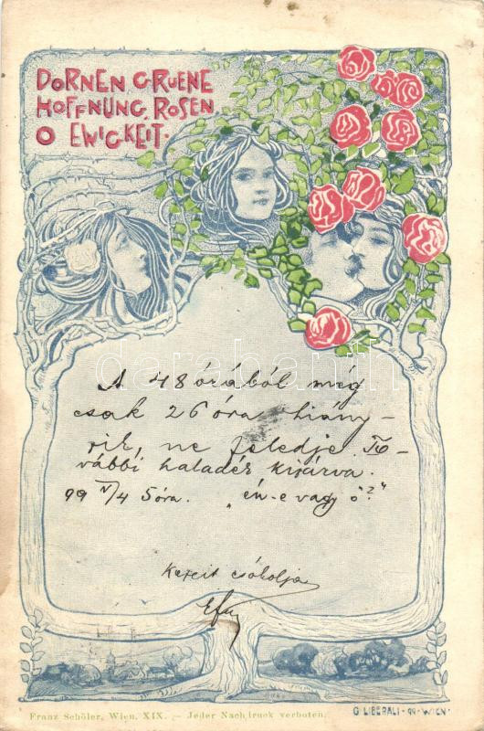 1899 Romantic greeting art postcard; roses, floral, s: G. Liberali (fl)