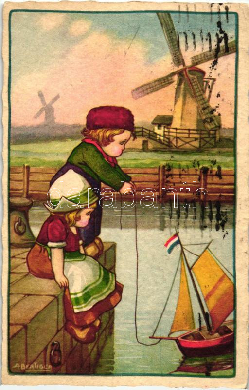 Dutch children, Italian art postcard, Degami No. 155., s: A. Bertiglia (EK)