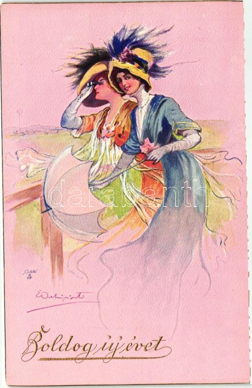 New Year, ladies, Raphael Tuck & Sons Connoisseur Serie 1239. Mutt...