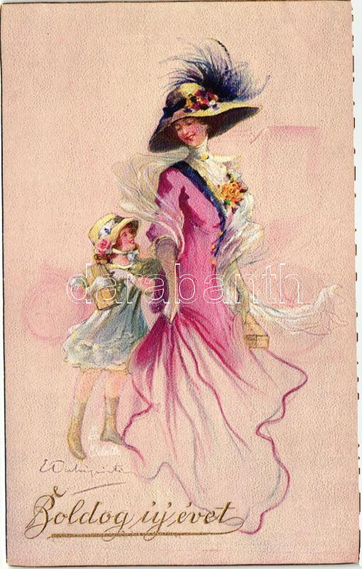 New Year, lady with girl, Raphael Tuck & Sons Connoisseur Serie 1241. Mutters Liebling s: E. Occhipinti