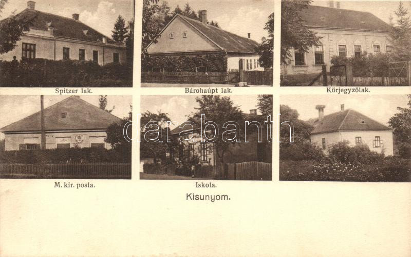 Kisunyom, Spitzer lak, Bárohaupt lak, Közjegyzőlak, Posta, Iskola, Kál...