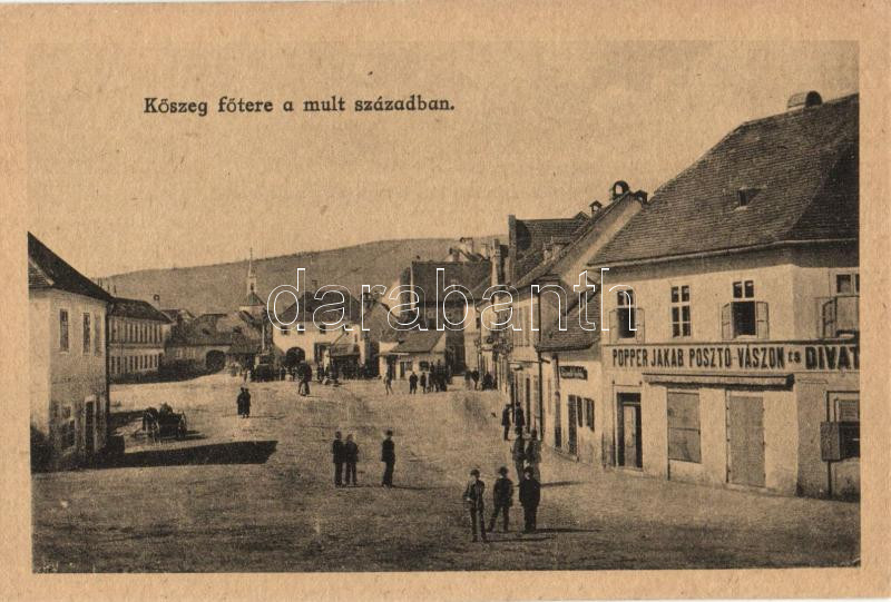 Kőszeg, Főtér a múlt században, Popper Jakab posztó- és vászonüzlete; ...