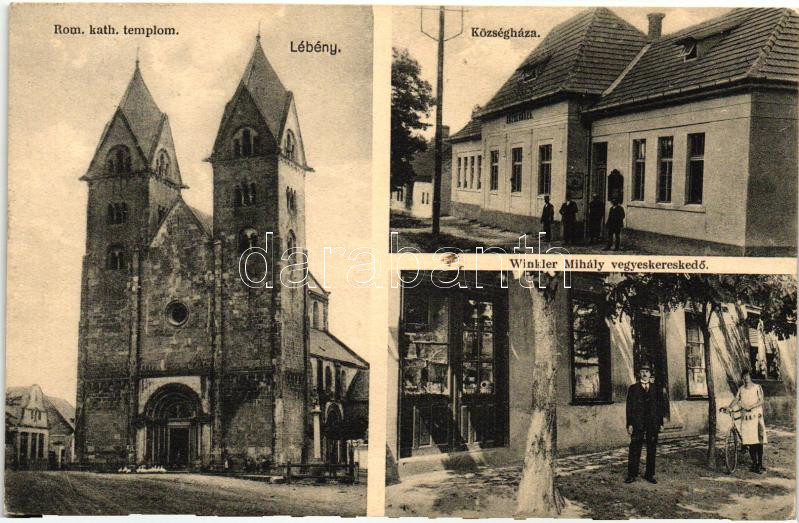 Lébény, Községháza, Római katolikus templom, Winkler Mihály vegyeskereskedése